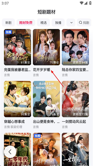 3、在甜宠短剧列表中,选择感兴趣的短剧,进入该短剧的播放页面。