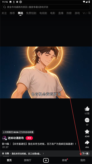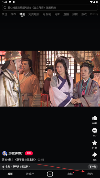 1、打开西瓜视频的应用APP,在精选下点击我的按钮。