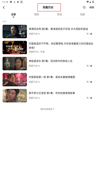 3、进入观看历史的界面内,可查看近几天的全部记录。