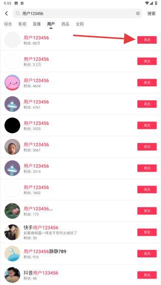 4、在用户页面内,找到目标人物点击关注的按钮即可。