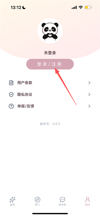 2、在个人中心页面,点击登录注册按钮,进入登录信息填写页面。