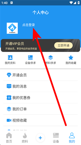 1、打开生物质燃料,在主界面点击底部我的,进入个人中心页面。