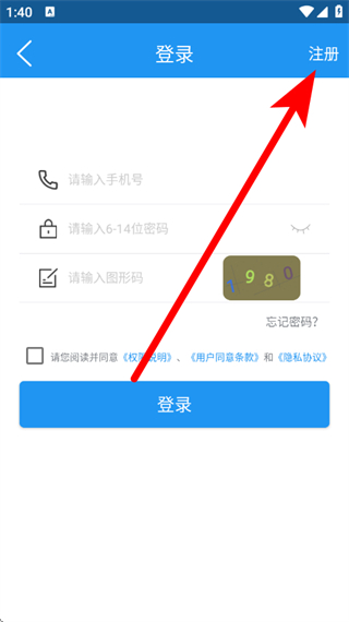 3、在登录页面,点击顶部注册,进入账号注册界面。