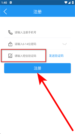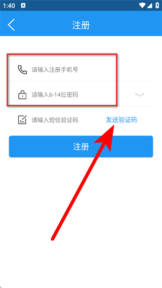 4、在注册页面,输入注册手机号并设置密码,点击发送验证码。