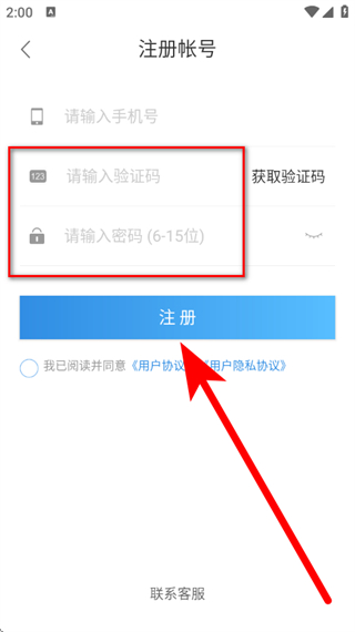 4、输入验证码并设置密码,勾选协议后,点击注册,完成注册。