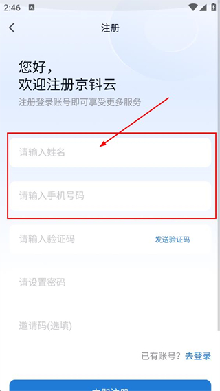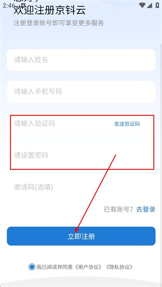 1、在京钭云登录页面,点击立即注册,进入注册页面。