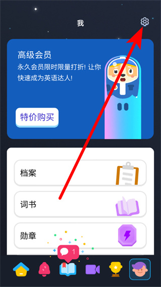 1、打开背词达人APP,点击底部导航栏最右侧头像图标进入个人页面。