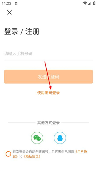 3、进入登录/注册页面后,找到并点击密码登录方式。