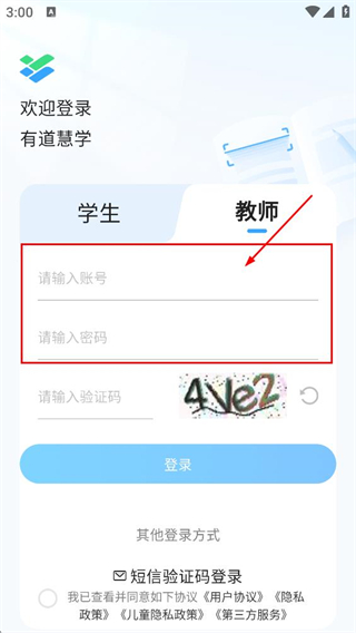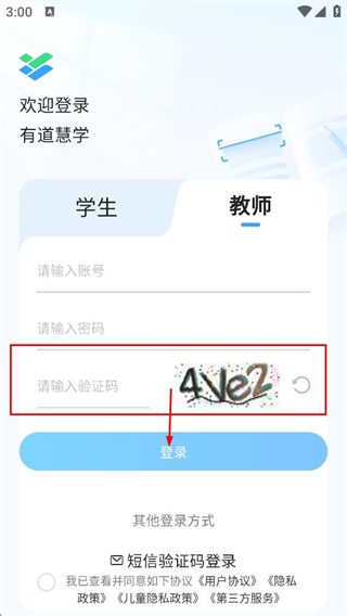 4、在教师登录页面,输入验证码,点击登录,完成教师账号登录操作。