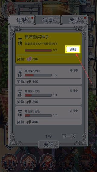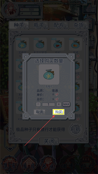 1、进入集市的种子界面,选择要购买的种子,选定购买数量后,点击购买按钮,即可获取对应种子。