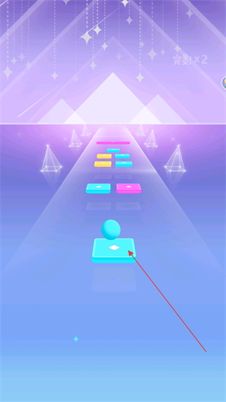1、操控小球落到黄色方块上,触发完美!评价,保持节奏匹配方块颜色推进。