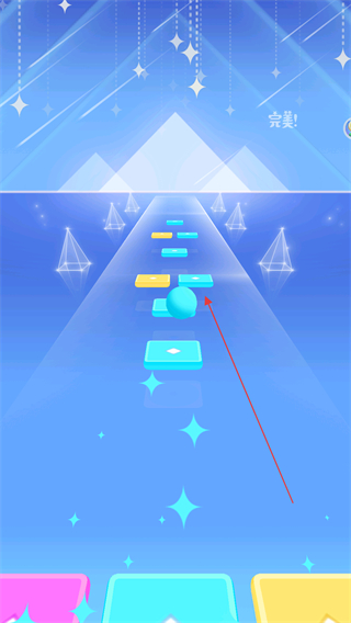 3、让小球落在蓝色方块上,维持完美评价,沿赛道节奏前进。