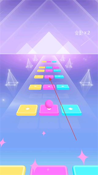 2、操控小球落到同色方块上,积累完美×2的评价,保持节奏推进。