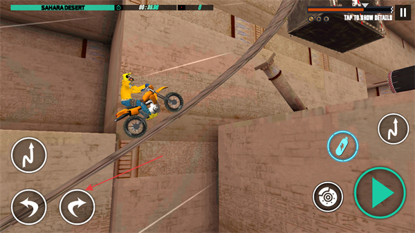 2、驾驶摩托车飞跃建筑间隙,在空中保持平衡,积累空中时间,完成特技动作获取高分。