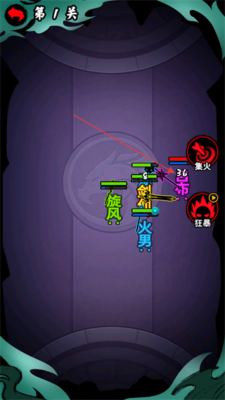 2、持续移动己方文字,与敌方帝等文字碰撞,逐步降低敌方血量。