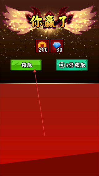 4、关卡显示你赢了,点击领取按钮获取金币和钻石奖励。