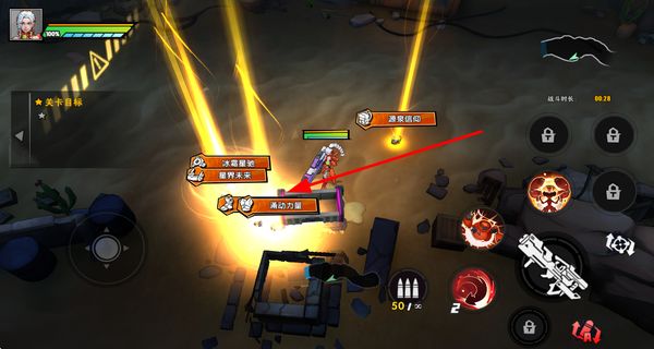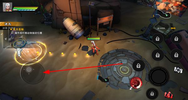 2、进入关卡后操作摇杆控制角色移动,前往指定位置拾取武器,完成关卡的移动目标,推进关卡流程。