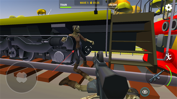 4、切换视角瞄准列车旁的僵尸,精准攻击以清理威胁。