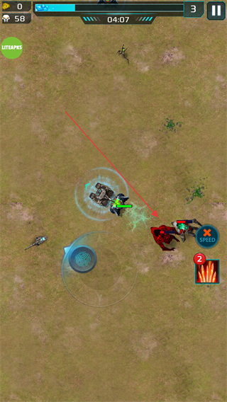 1、操控坦克攻击红色敌方单位,积累击杀数,提升等级。
