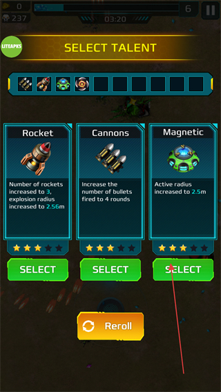 4、升级时选择天赋,如Magnetic扩大作用范围,增强坦克战力,助力通关。