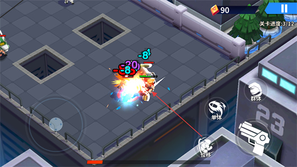 3、使用技能攻击远处敌人,造成高额伤害,消灭敌人。