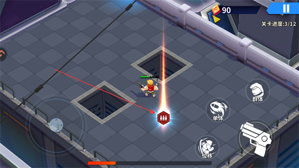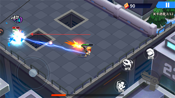 1、使用普攻攻击敌人,快速削减其血量,推进关卡进度。