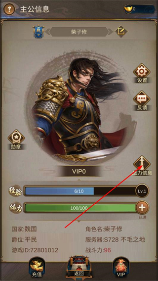 1、在游戏主界面点击左上角的头像,进入主公信息页面。