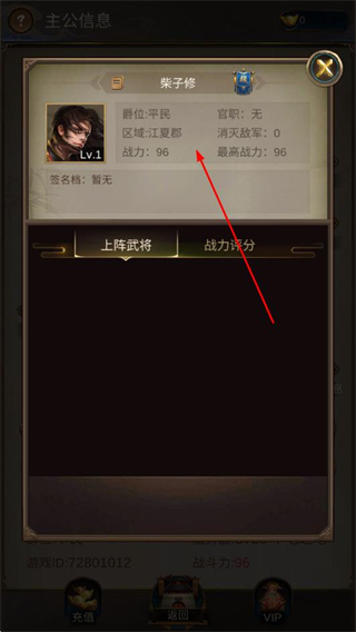 2、在主公信息页面点击战力信息,进入战力详情界面。