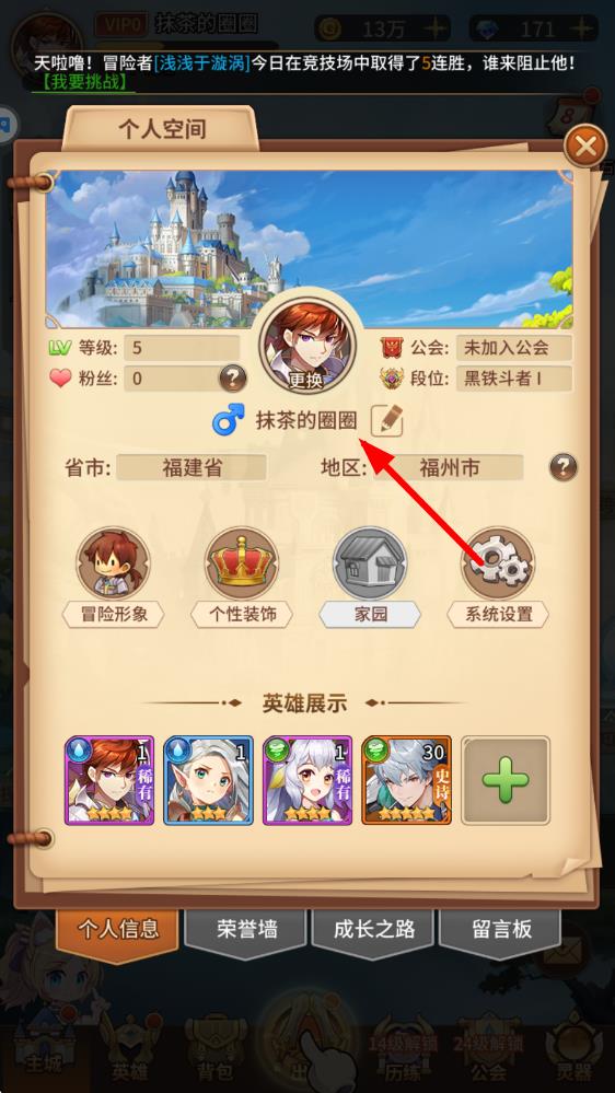 1、进入闪烁之光游戏,在游戏主界面点击左上角的玩家头像,进入个人空间页面。