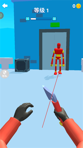 3、面对多个机器人时,依次瞄准投掷飞刀,逐个击破。