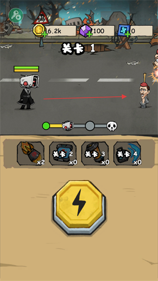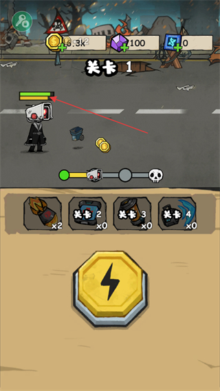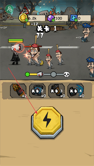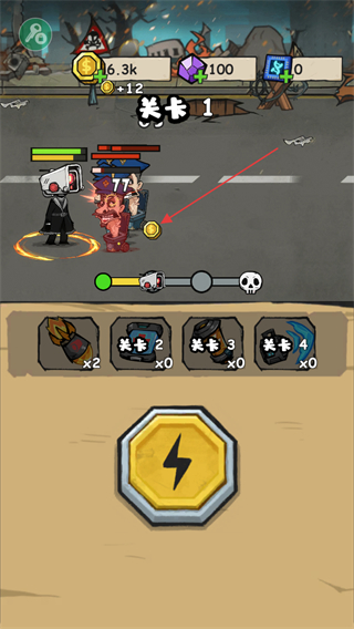 2、敌人出现后,点击屏幕下方的闪电按钮,释放技能攻击敌人获取金币。