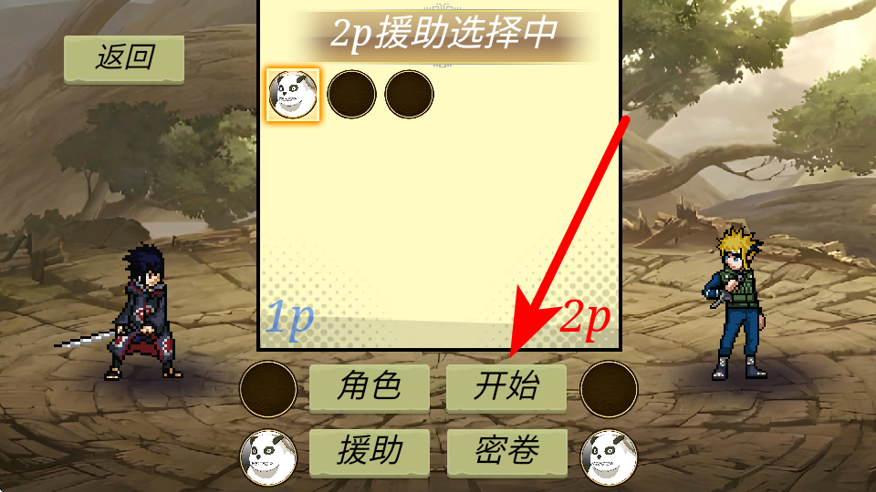 1、在援助选择界面选定援助角色后,点击开始按钮进入忍者对战,这是开启对决的关键操作,准确点击后可进入实战场景,解锁援助召唤等核心对战玩法。