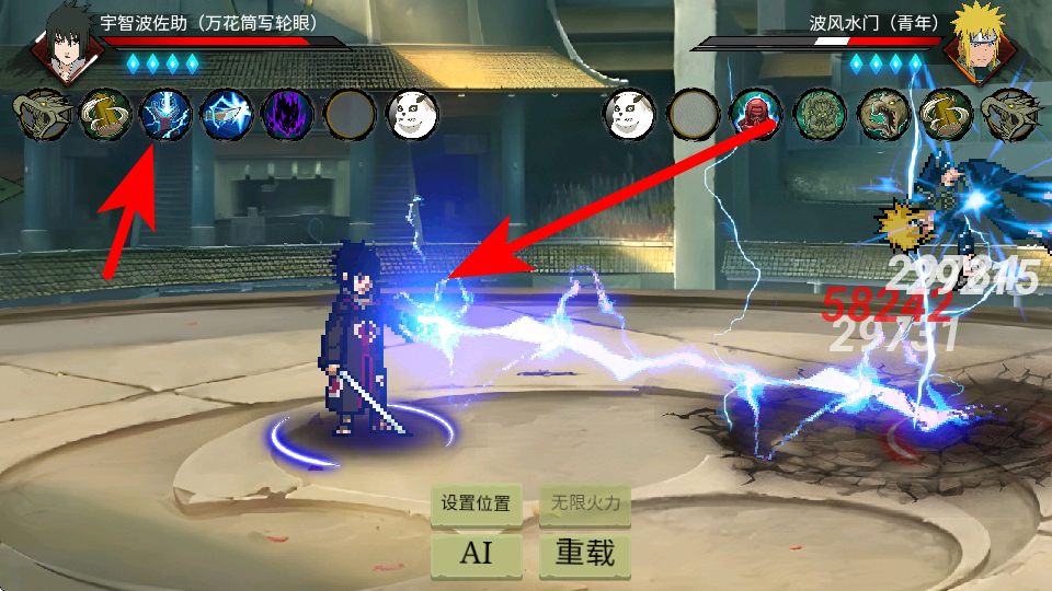 3、点击技能栏中的对应忍术如宇智波佐助的雷系技能,释放技能造成伤害,这是对战输出的核心操作,通过连贯释放技能持续消耗对手血量,推进对战节奏。