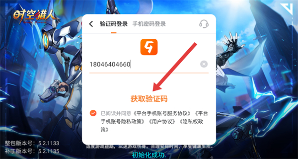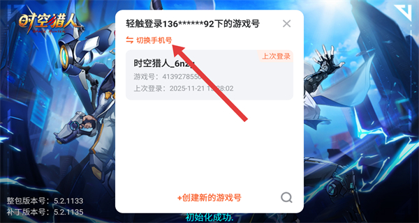1、在时空猎人登录界面,点击切换游戏号按钮。