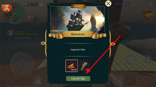 4、完成资源收集后,回到船只升级界面,确认数量满足要求后,点击升级按钮,即可提升船只等级,推进游戏进程。