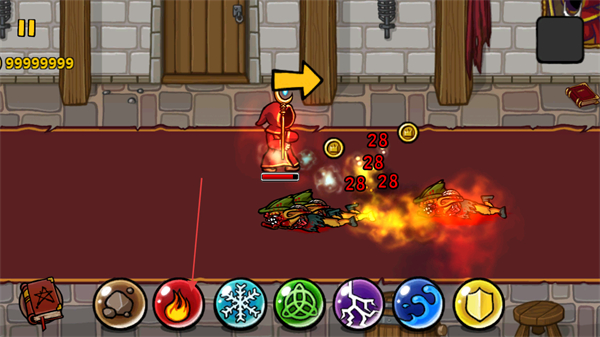 2、消灭敌人后收集金币,积累资源,提升魔法能力。