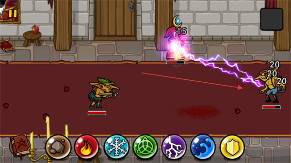 4、切换闪电魔法攻击敌人,利用不同魔法的特性,高效消灭敌人,完成关卡挑战。