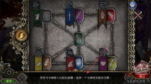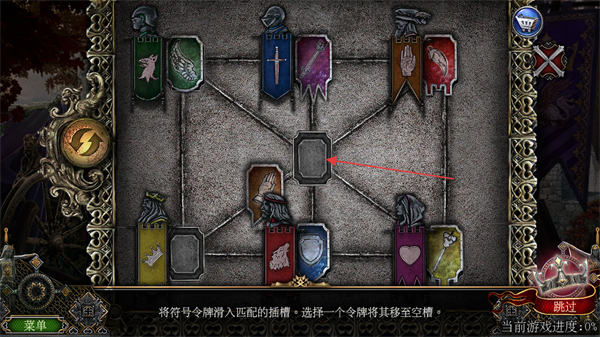 1、观察符号令牌和插槽的匹配关系,选择合适的令牌移至空槽。