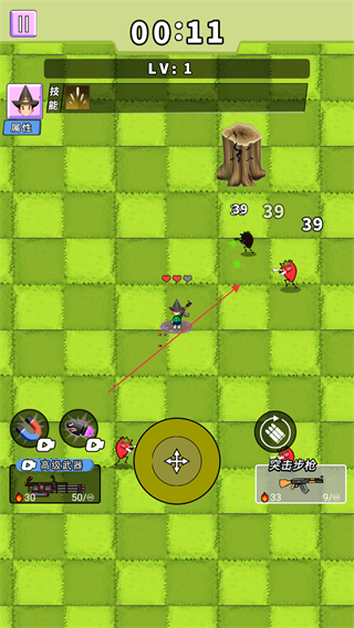 2、操控角色在绿色格子地图中移动,用突击步枪攻击怪物,注意躲避怪物攻击。