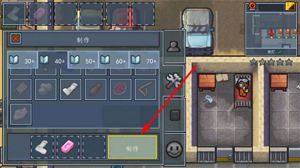 3、工具制作需利用工作台,将收集到的材料放入工作台栏,在制作界面选择对应配方,点击制作即可获得工具。