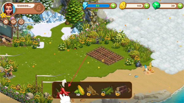 2、按照指引种植辣椒等作物,成熟后用镰刀收割,获取作物资源。