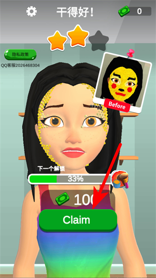 4、完成关卡后,点击Claim按钮,领取奖励并进入下一个关卡。