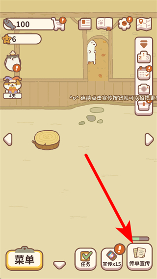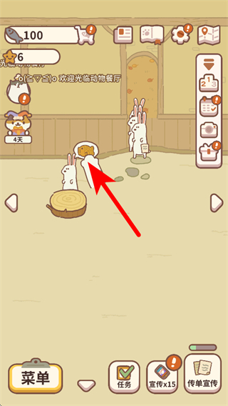 1、打开动物餐厅游戏,点击右下角传单宣传按钮,招揽更多动物顾客到餐厅。
