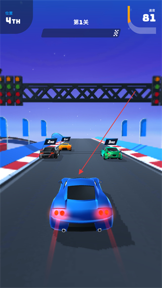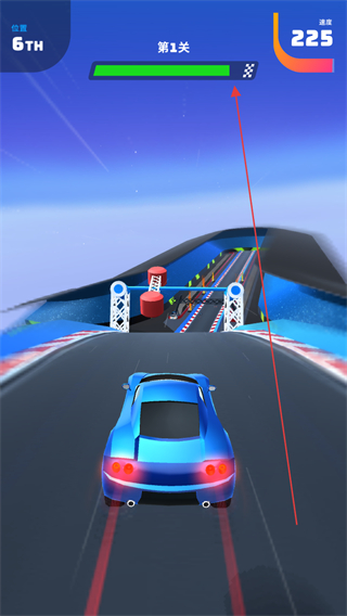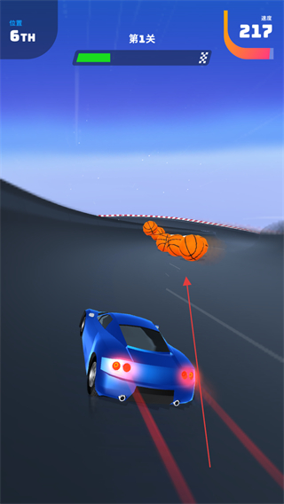 4、冲向终点前的坡道,保持高速行驶,争取在关卡中获得靠前的排名,完成挑战。