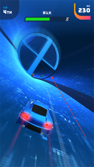 3、穿过隧道等特殊路段时,把握好行驶方向,继续与对手展开竞速比拼。