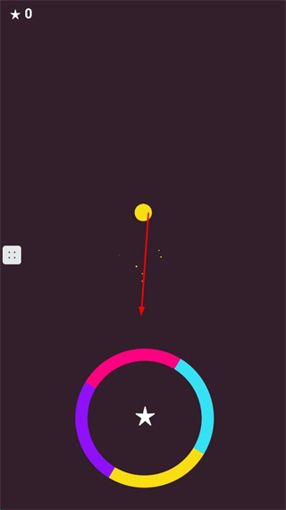 3、黄色小球下落时观察圆环颜色分布,待小球到达对应黄色区域时点击屏幕,成功得分。