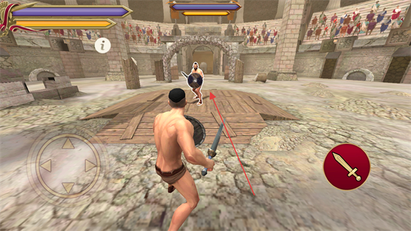 1、根据提示跑到对手!,用左侧摇杆操控角斗士移动,靠近对手。