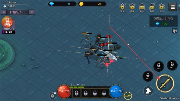 1、在狩猎场1-1中,操控角色攻击敌人,通过不断击杀敌人积累金币和经验。