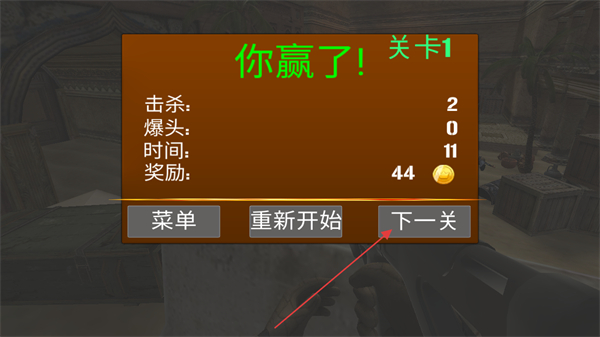 4、消灭所有敌人后,完成关卡获得你赢了的胜利提示,点击下一关继续挑战。