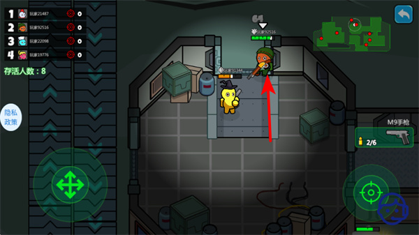 2、依照红色箭头指引点击目标道具如补给箱,可拾取道具提升战力,这是强化战斗能力的核心步骤。